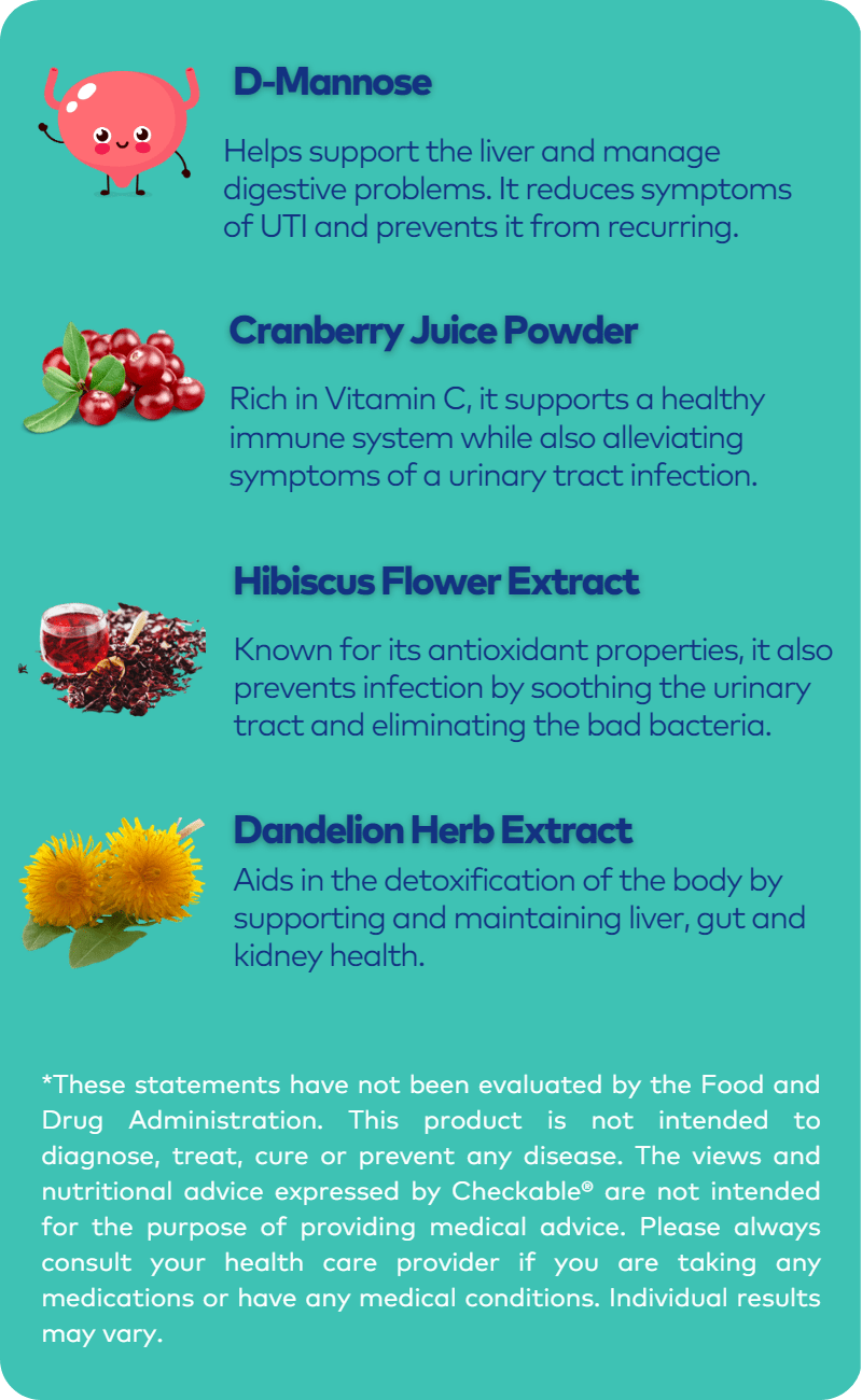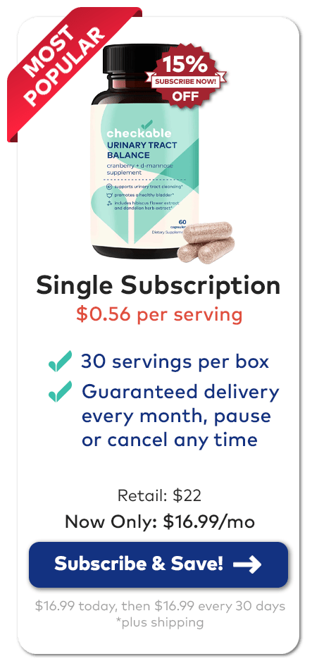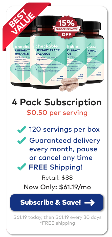 We are so confident you'll love our Checkable Health® Urinary Tract Balance & Prevention Supplement , we offer a 100% hassle-free money back guarantee.