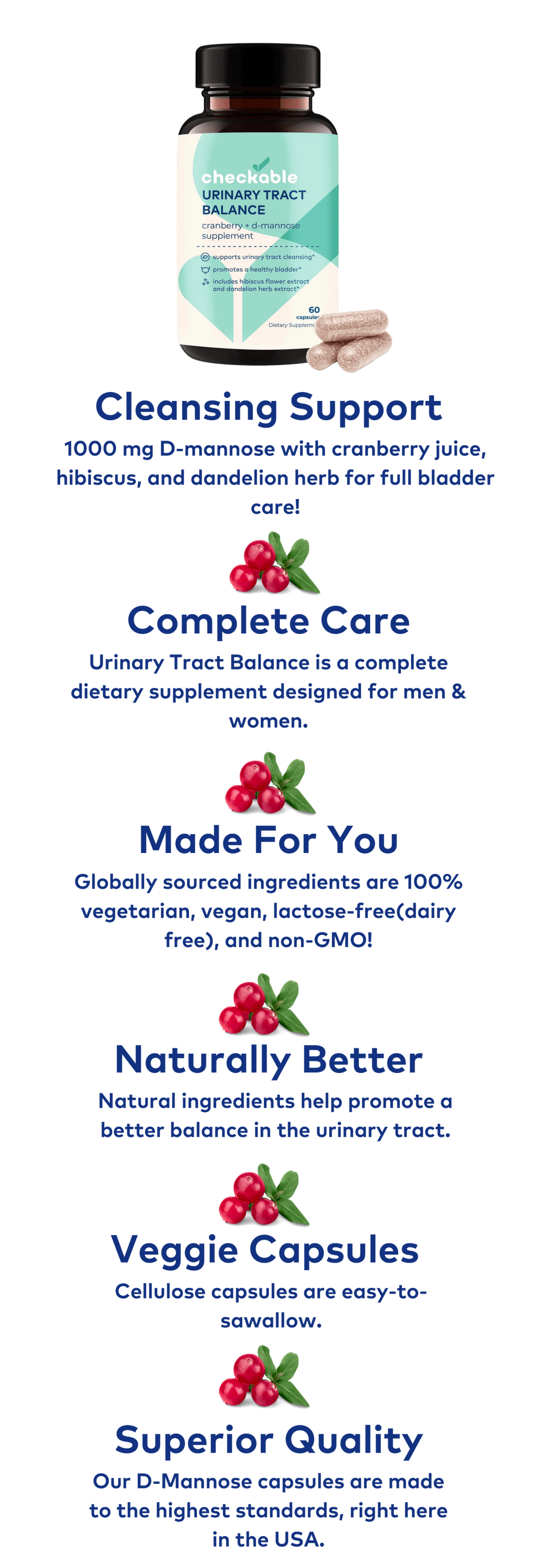 We are so confident you'll love our Checkable Health® Urinary Tract Balance & Prevention Supplement , we offer a